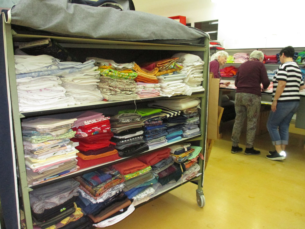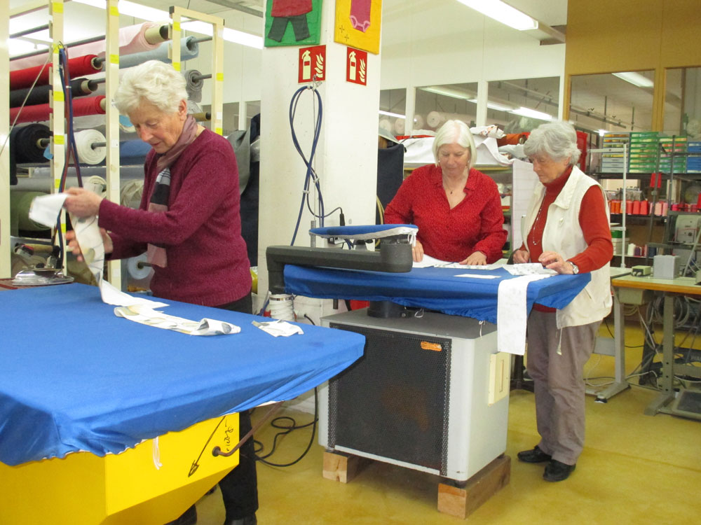 Im Nähsaal der Firma Sanetta treffen sich einmal im Monat an einem Mittwoch Seniorinnen mit Vorkenntnissen im Nähen und Handarbeiten.
