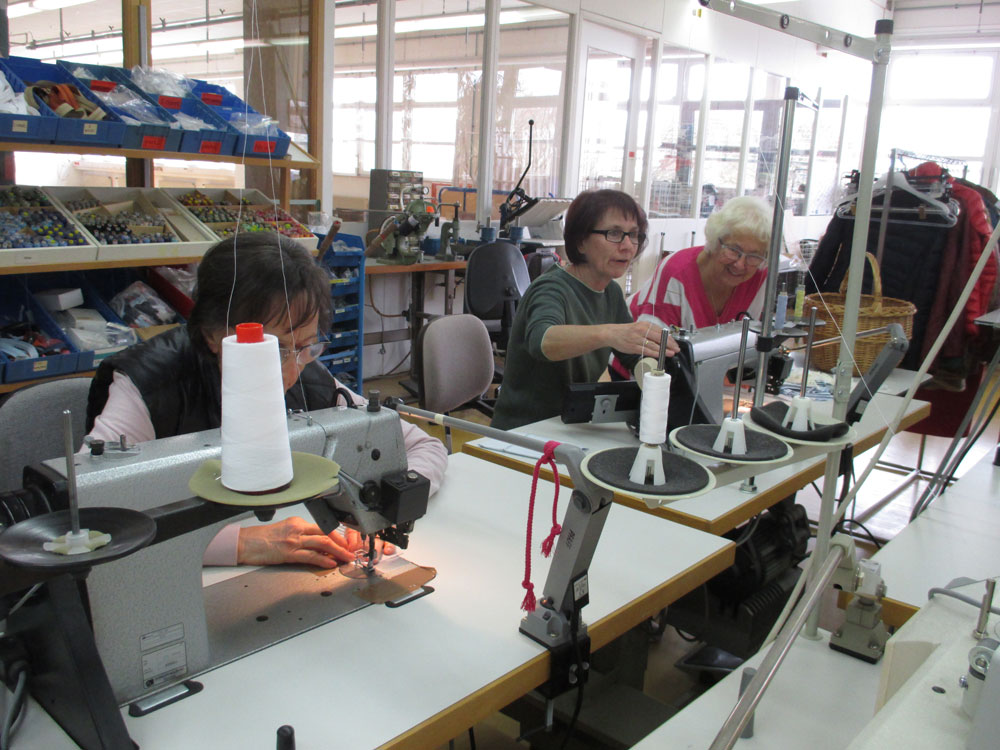 Im Nähsaal der Firma Sanetta treffen sich seit über 10 Jahren jeweils am 1. Mittwoch im Monat ab 14 Uhr die Frauen der Seniorenwerkstatt mit Herz.